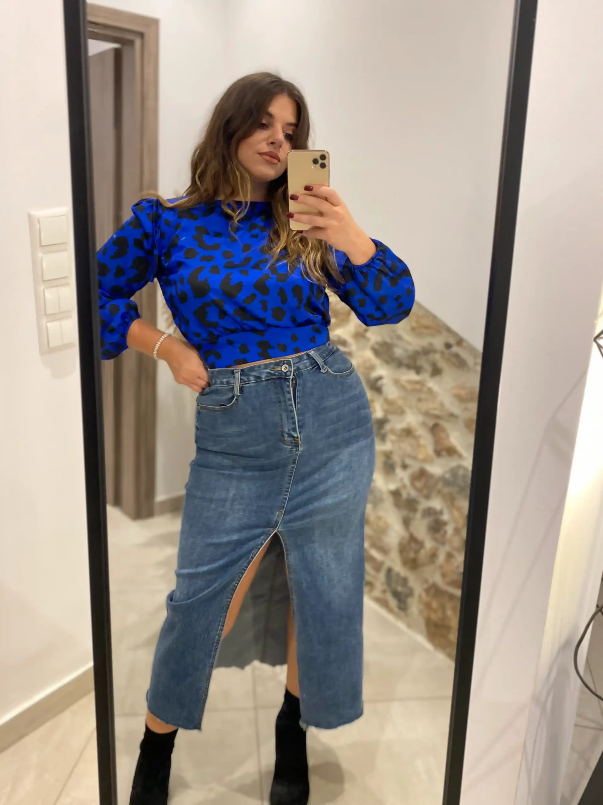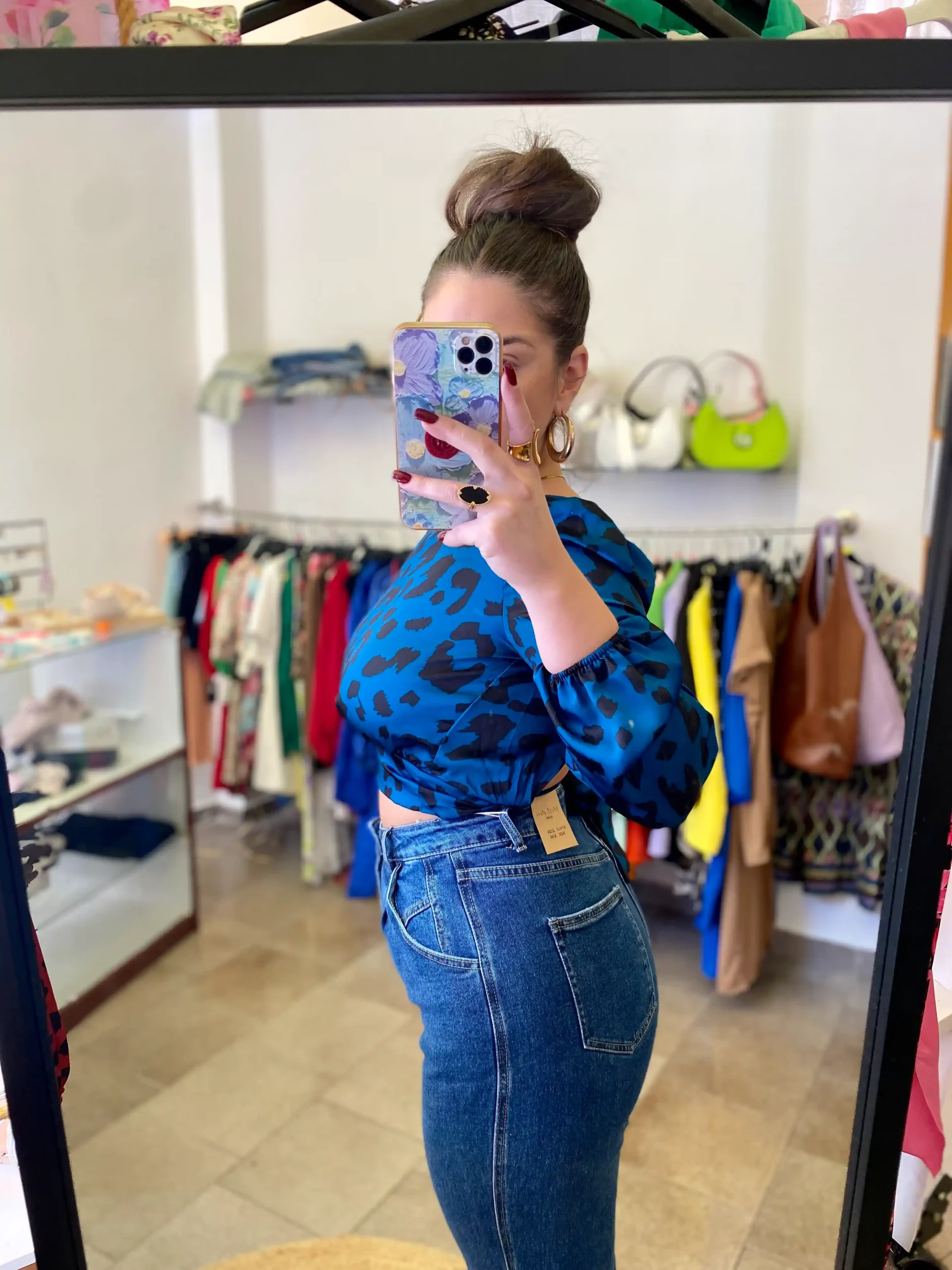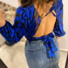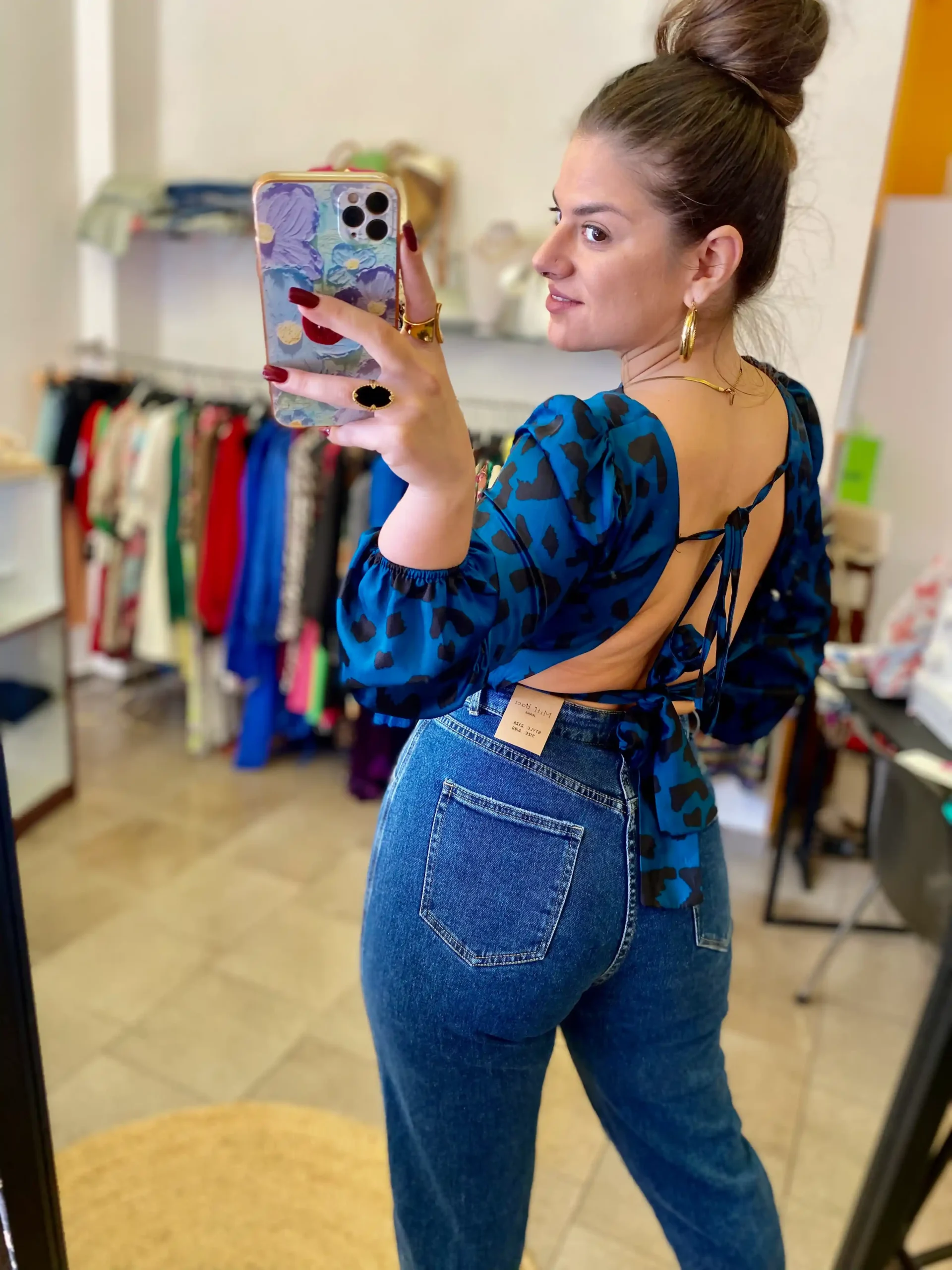 Animal print crop top σατέν πουκάμισο με ανοιχτή πλάτη με δέσιμο το οποίο προσαρμόζεται ανάλογα με το μέγεθος.