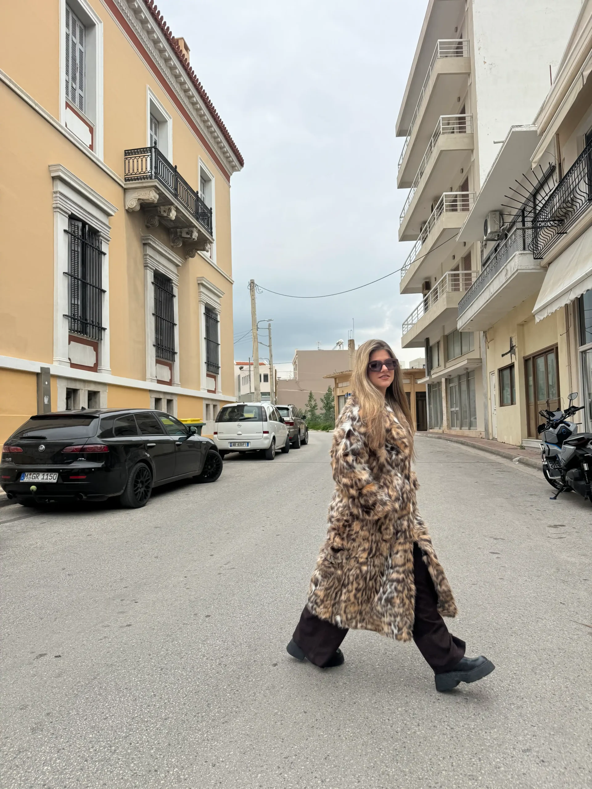 Το animal print δίνει ένταση και προσωπικότητα, ενώ η μαλακή, πλούσια υφή κρατά το αποτέλεσμα κομψό και ισορροπημένο. Φοριέται από το πρωί μέχρι το βράδυ και μετατρέπει κάθε look σε δήλωση.