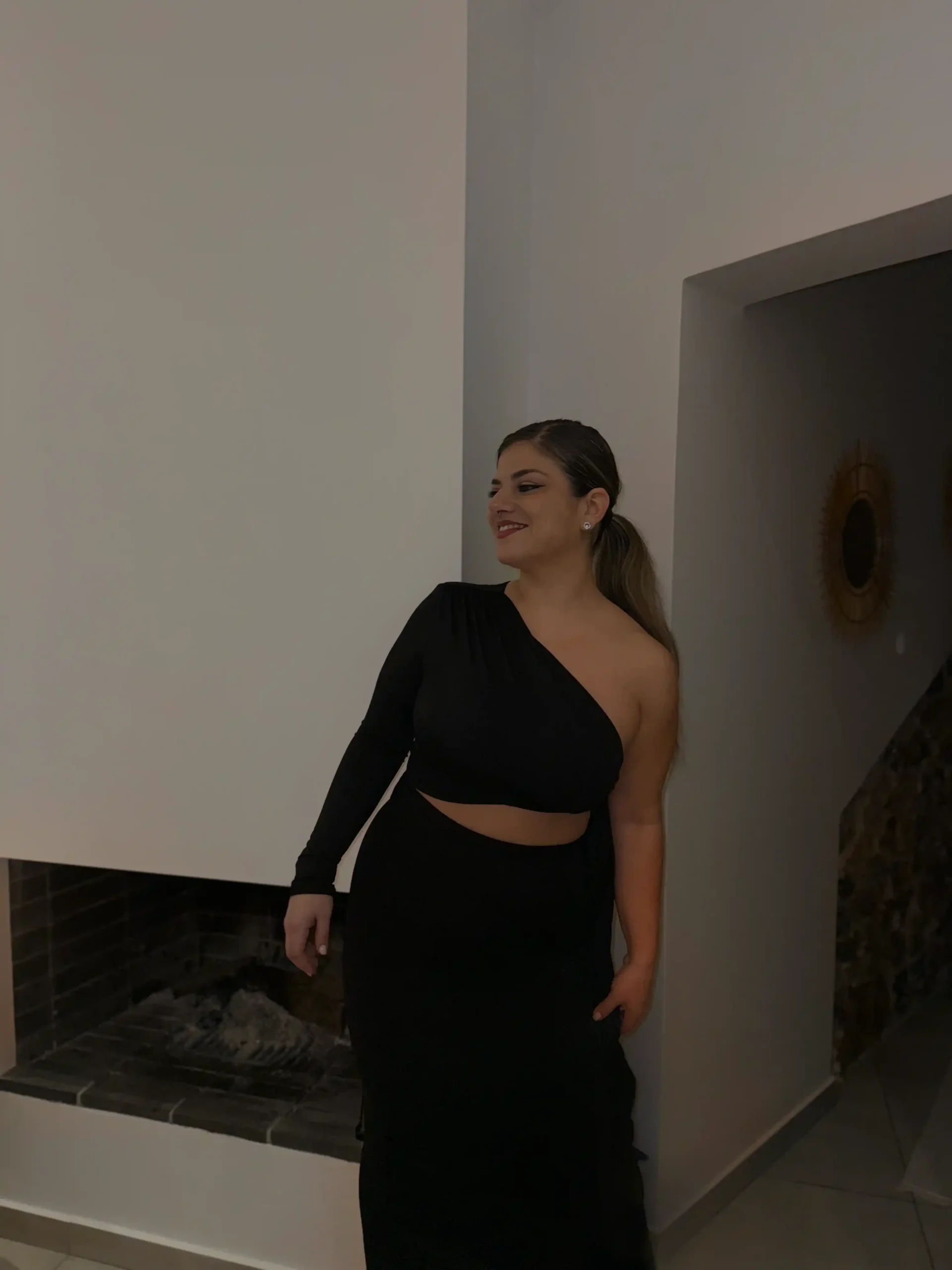 One-shoulder γραμμή, διακριτικό άνοιγμα στη μέση και ελαστικό ύφασμα που αγκαλιάζει το σώμα και συνεργάζεται μαζί σου. Μακρύ, εφαρμοστό και πολύ κολακευτικό — κάθεται σωστά, κινείται ωραία και κάνει τη δουλειά του χωρίς δράματα.