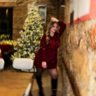 Το μακρύ μανίκι ισορροπεί ιδανικά τη λάμψη, ενώ το μήκος παραμένει άψογο για βραδινές εμφανίσεις με άνεση και αυτοπεποίθηση. Το βελούδο αγκαλιάζει το σώμα πιο απαλά και τονίζει τη σιλουέτα χωρίς να πιέζει.