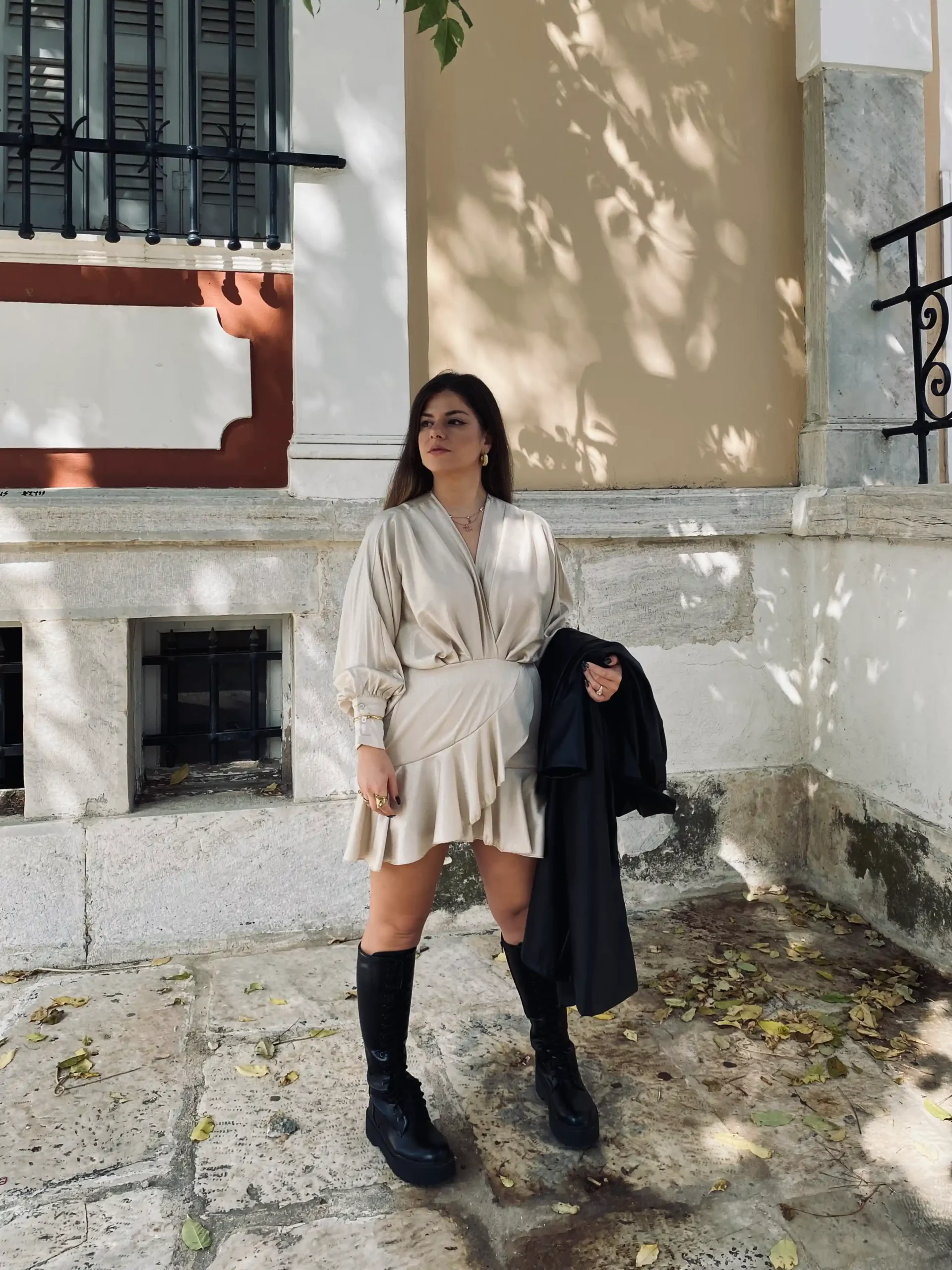 Σατέν φόρεμα με λάστιχο στη μέση.
